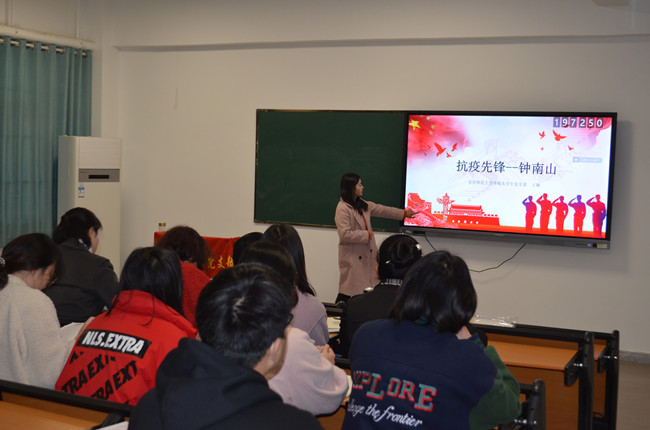 “1月18日,星期六,84岁的中国工程院院士钟南山接到赶往武汉的紧急通知。时值春节前夕,忙碌了一年的人们陆续踏上回家的路。当天去武汉的航班已无机票,火车票也非常紧张。颇费周折,钟南山才挤上了傍晚5点多从广州南开往武汉的高铁。走得非常匆忙,他甚至没有准备羽绒服,只穿了一件咖啡色格子西装……”,邓稼先学生党支部党史学习教育宣讲团成员王颖深情地宣讲道。
