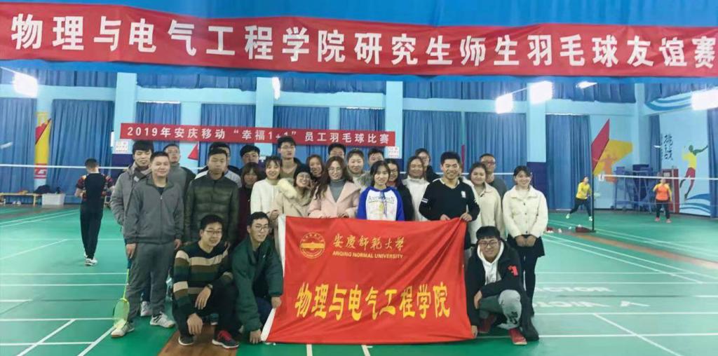 12月6日下午,我院和数学与计算科学学院在安庆市蔡山活动中心联合举办研究生师生羽毛球友谊赛。我院研究生秘书、2019级全体研究生与数学院研究生导师、部分研究生共同参加比赛。