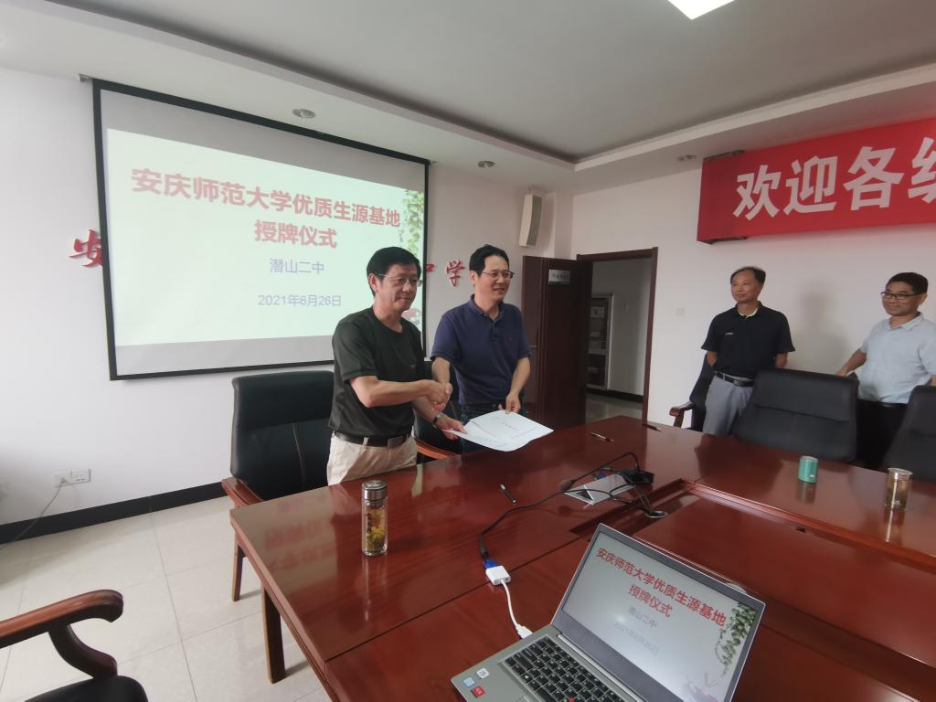 6月24日-26日,学院赴潜山、怀宁等地区开展本科生招生宣传工作,党委书记江贵生赴潜山二中签约安庆师范大学优质生源基地。