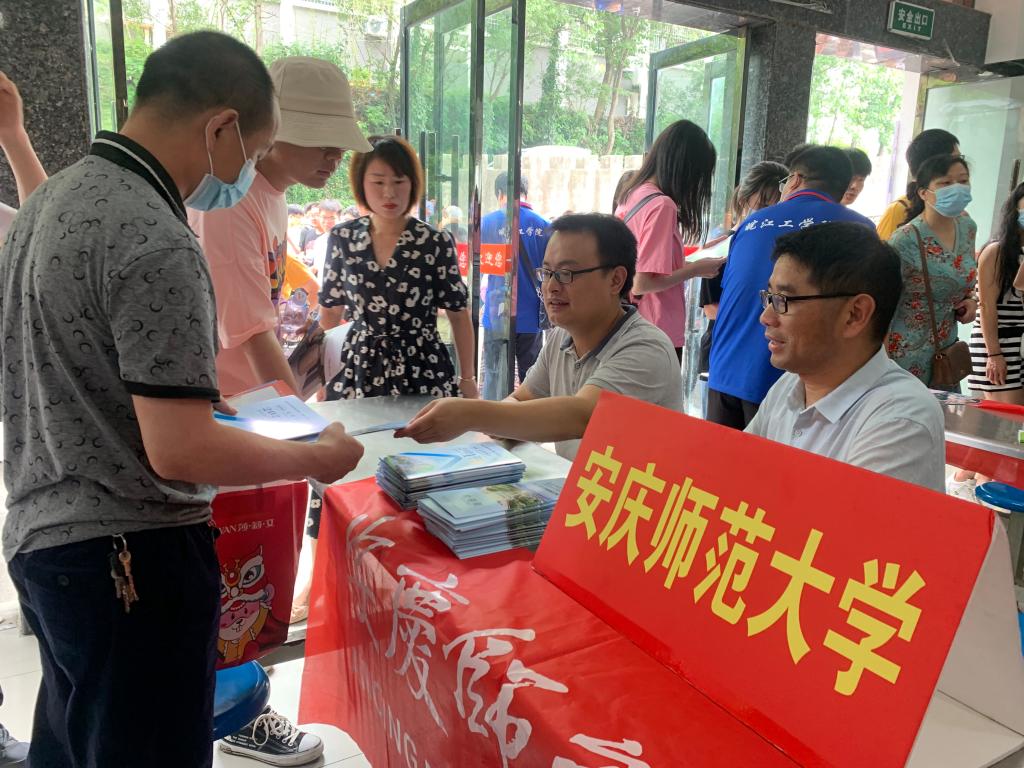 “贵校理工类专业的发展前景是什么?”、“去年贵校投档的排名是多少?”,在野寨中学、黄铺中学和怀宁中学,招生宣传队员在现场仔细耐心为前来咨询的考生和家长一一解答问题。