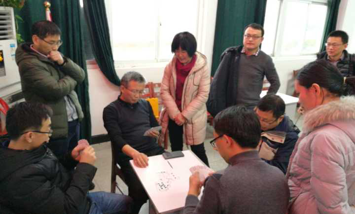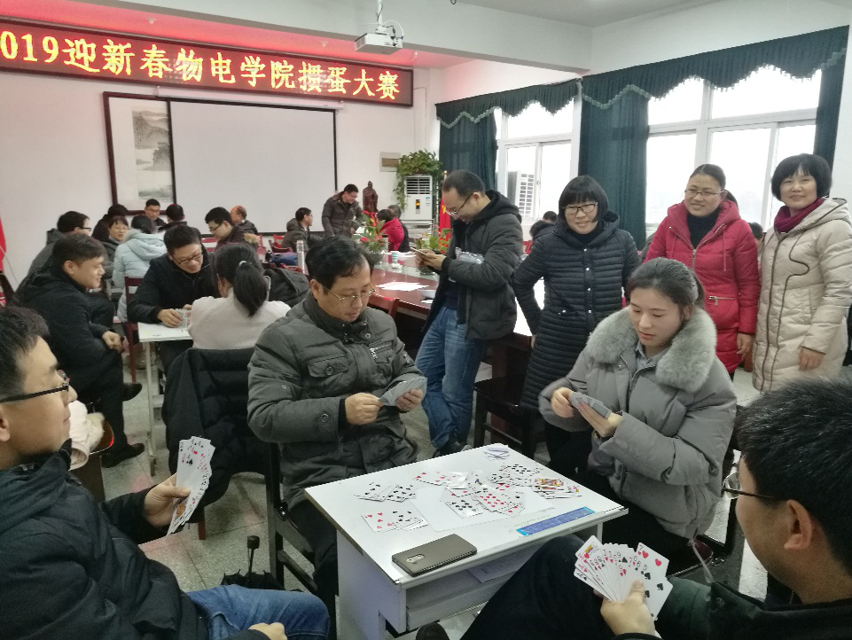 为进一步丰富学院教职工的业余文化生活,促进交流,愉悦身心,营造欢乐、祥和的迎新氛围,在校工会的关心和指导下,12月26日下午,我院在学院会议室举办了教职工掼蛋比赛。