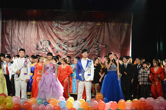 奔向远方,实现梦想;奔向远方,放飞希望;奔向未来,迎接东升旭日。在不知不觉中,晚会也迎来了最后一个篇章——奔向未来。钢琴独奏《野花》的表演者陈星汉与魔术师王俊龙共同带来了神秘而精彩的魔术表演《悬浮》,瞬间引爆全场。话剧《还珠格格》则发挥想象,延续了我院主持人大赛时的情节,以独特的视角,将我们熟悉的电影剧情完美的融合在一起,演绎了一场别样“还珠格格”,收到了意想不到的喜剧效果。大气磅礴的诗歌朗诵《我们》,风格各异、悦耳动听的歌曲串烧,这更是一场极致的视觉盛宴。最后,在音乐学院歌伴舞《让我们舞起来》中,整场晚会圆满落下了帷幕。
