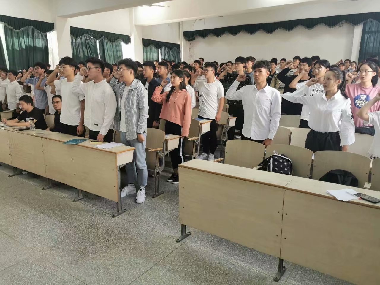 全体学生会成员起立,举起右手,用一致的话语表达自己加入学生会的决心。