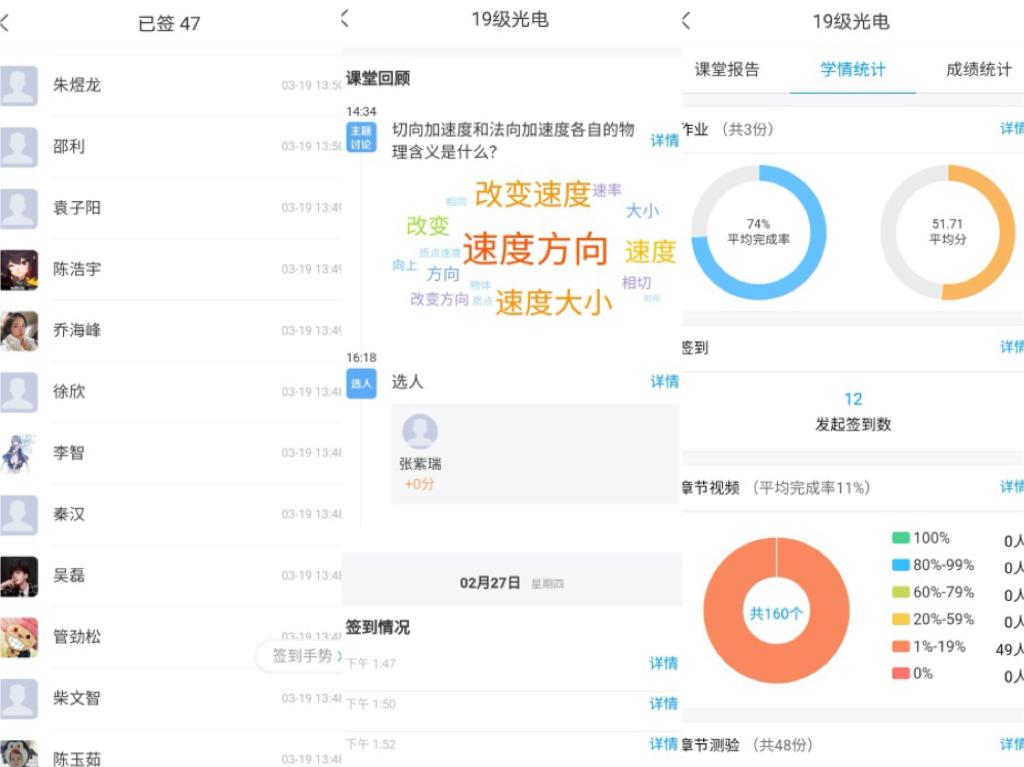 利用学习通的大数据可以进行很好的课堂监管。所有相关的学习内容都设置了任务点,可以查看学生的学习进度,课堂中的表现也会生成课堂报告,对于每位学生登陆次数和时间段、签到、讨论、完成作业、笔记等情况都可以在统计当中查到,基于此,教师会通过系统督促未完成作业的同学及时提交作业。