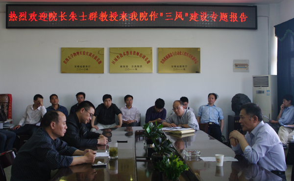 最后,朱院长指出,一个大学风气的形成需要一定的条件,既要只争朝夕,也不能急功近利、搞形式主义。学校有责任为“三风”建设创设条件和环境。要不断提高教师待遇,同时要创设公平、民主、和谐、公开的环境。希望物理与电气工程学院通过“三风”建设,加强专业调整、资源优化,进一步提高人才培养质量,促进学生更好地发展。