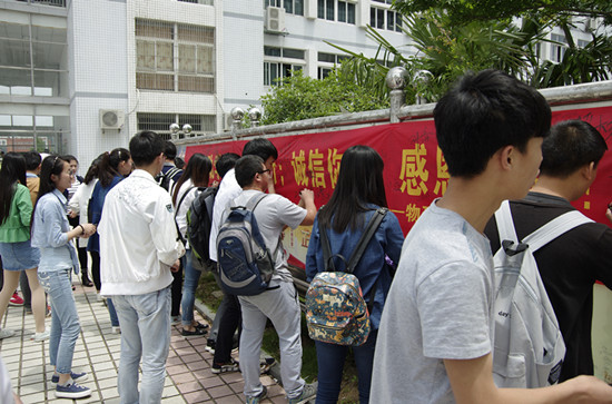 敬敷广场上 “爱心助学,与梦同行,诚信你我,感恩社会”的红色条幅,吸引了众多同学的目光。此时正当艳阳高照,但这丝毫没有阻挡同学们参与活动的热情。同学们观看诚信图片展和案例展,并纷纷在条幅上签名,表明自己履行承诺的决心。此次活动,旨在向同学们宣传“守信于行、诚信至上” 的活动主题,在广大同学中间营造出了“人人知诚信,人人讲诚信”的良好氛围。