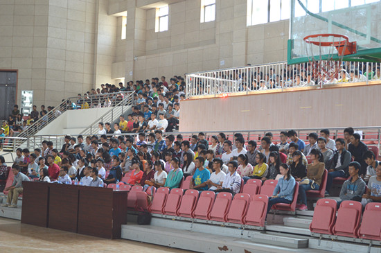 10月13日上午,我院2013级新生入学教育动员大会在体育馆举行。学院院长张杰、党总支书记吴昭方、副院长江巨浪、副院长江贵生、党总支副书记夏建华、团总支负责老师及新生班级辅导员、全体2013级新生参加了此次动员大会。大会由党总支副书记夏建华主持。
