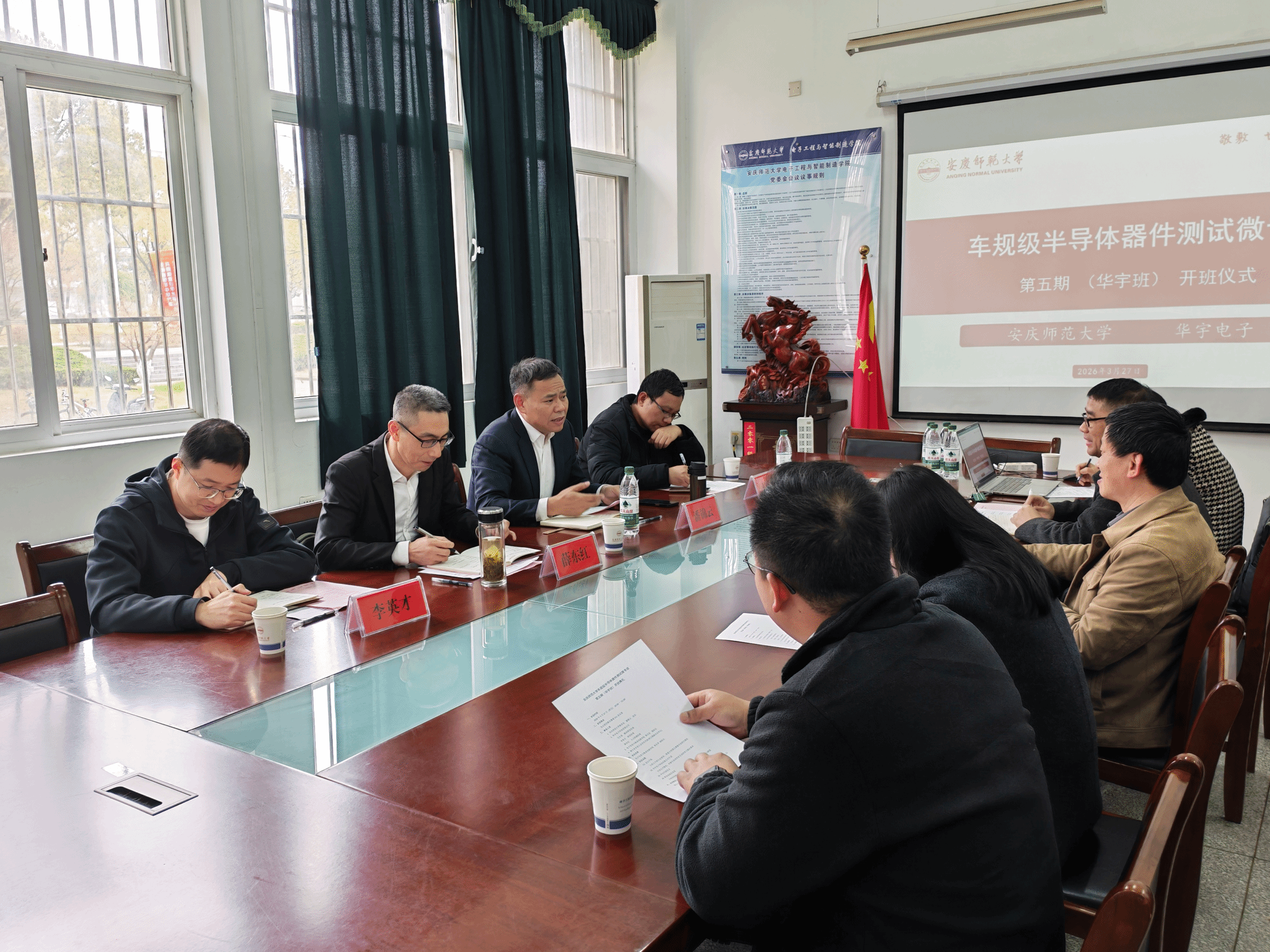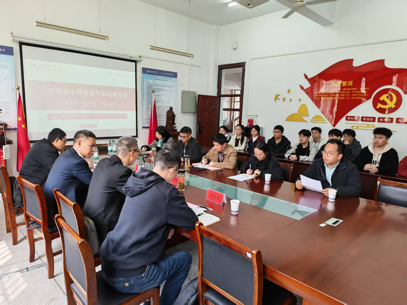 3月27日上午,车规级半导体器件测试微专业第五期(华宇电子订单班)开班仪式在稼先楼南119会议室举行。华宇电子人力资源经理薛东红一行,学校教务处处长潘锦云,学院副院长詹文法及微专业师生共同出席,开班仪式由副院长章礼华主持。